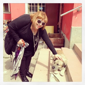 Doamna Elena Basso-Stanescu si formidabilul Tarzan in curtea UAD Cluj