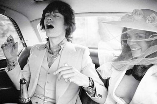 Bianca si Mick Jagger in masina, in ziua nuntii